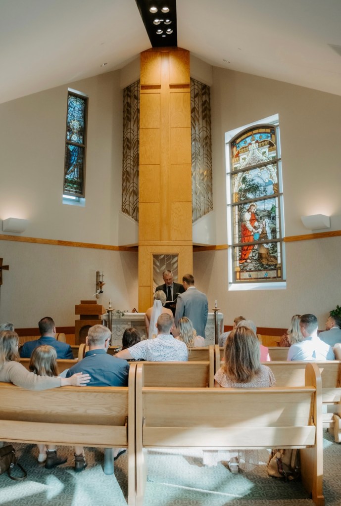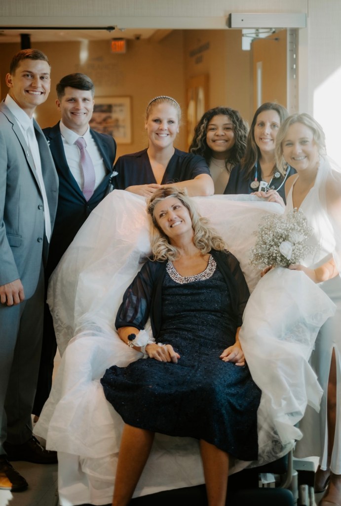 In the Lord’s perfect kindness, the ceremony ensued. There was an emotional first look, sobs from security guards and nurses and family all alike. Then Cam and Pastor Terry assumed the altar, and Riley began her walk down the hospital chapel aisle with her father by her side.