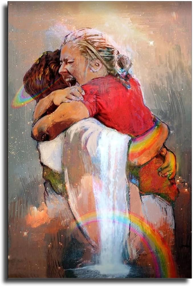 It’s called First Day in Heaven, and I cannot believe how much it looks like my mom. A mini-mercy. A painted representation of that grace-given reflection. Head full of hair, the long-awaited embrace of the Savior who stretched out His arms on the cross to pay the price for her sins. The exclamation mark to a promise of redemption that transcends all the pages of Scripture. I’ll never get tired of looking at it.
